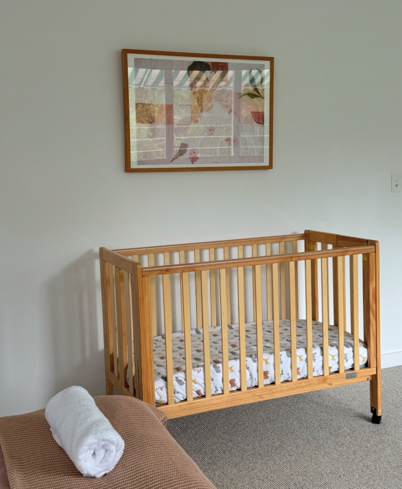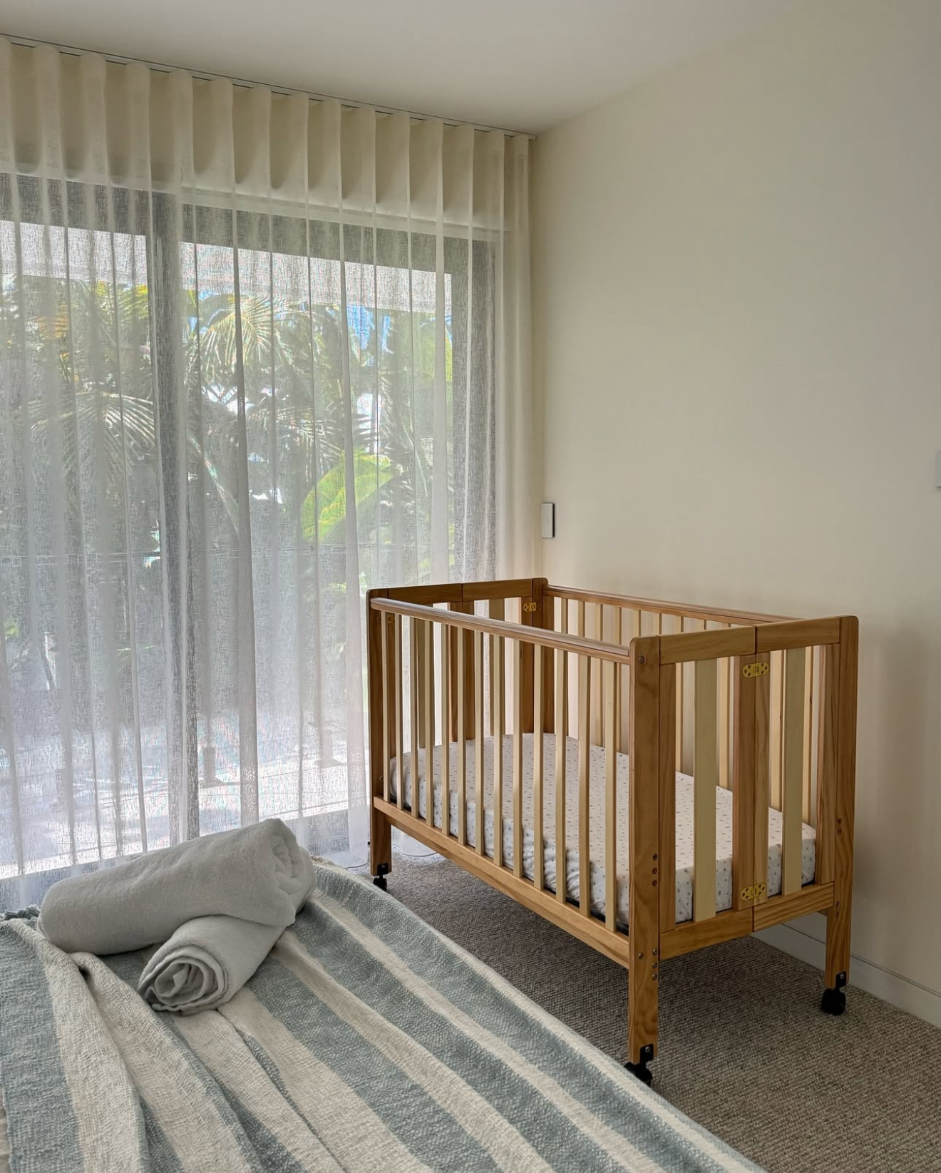 Our wooden cots are sturdy and reliable, giving you peace of mind and helping your little one settle quickly after a day of Byron Bay adventures.